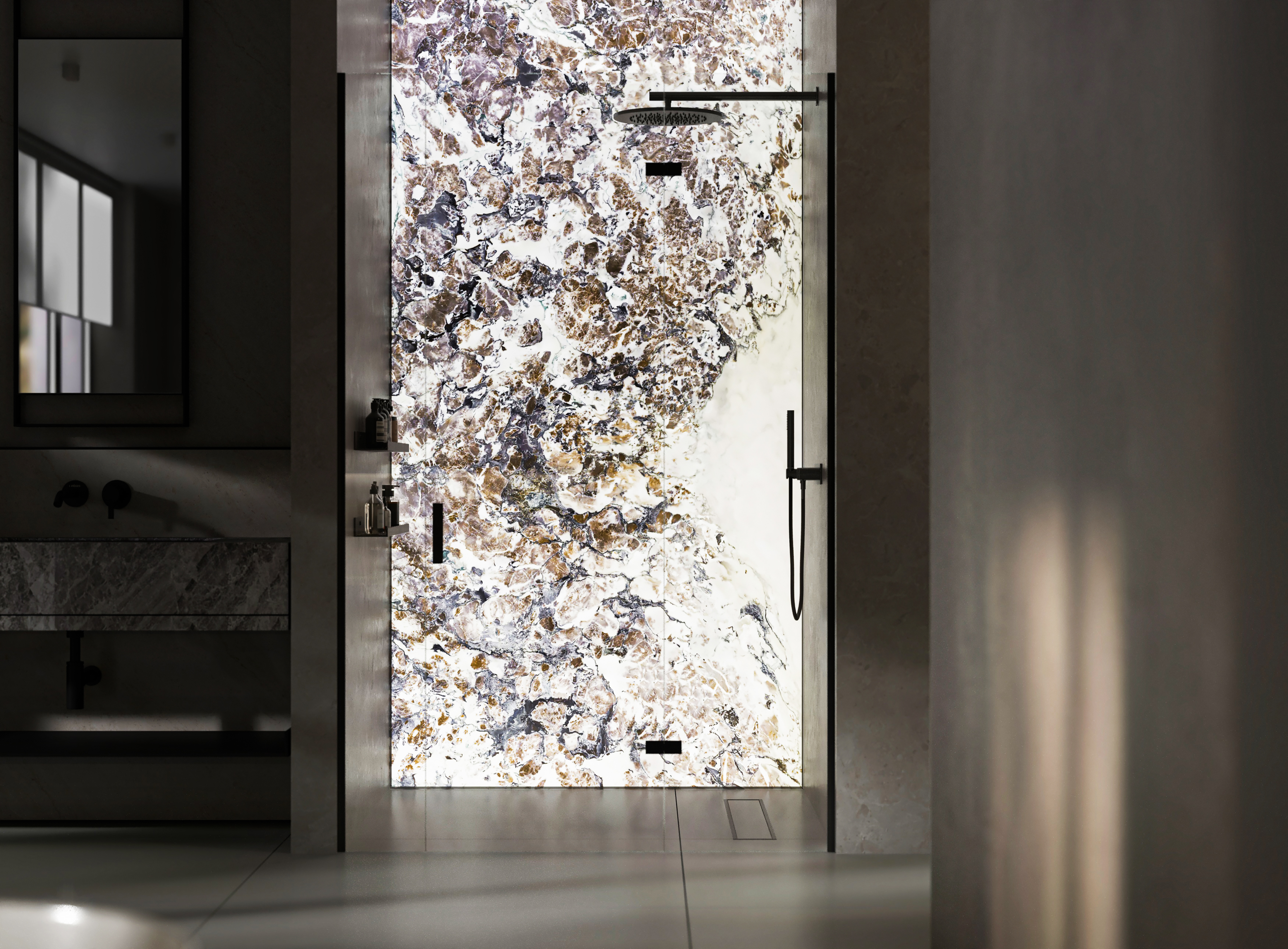 Our textures are created using ultra-high-resolution imagery of real stone, offering unparalleled realism. When backlit, these super-sized natural patterns come vividly to life, providing both luxury and depth.